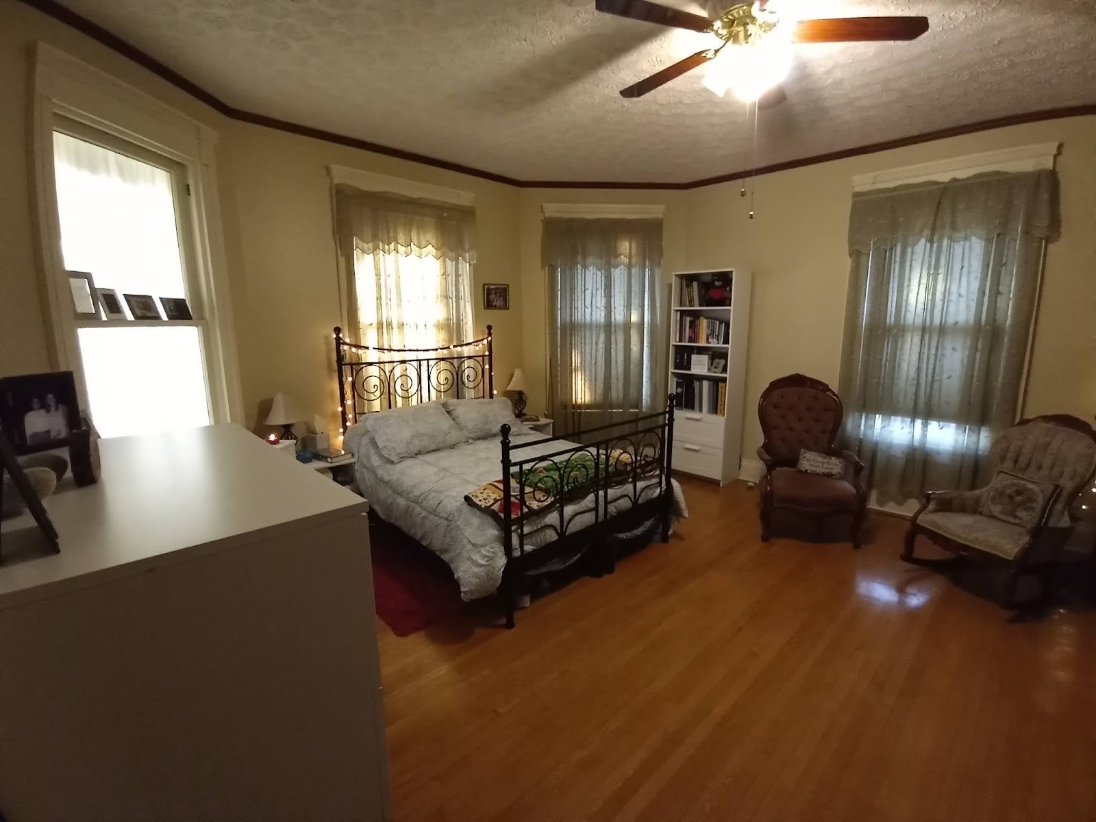 This is actually a bedroom that functions as our TV room because we didn't want a TV on the main floor. The door seen above connects it to the master bedroom.
